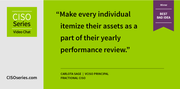 Congrats to Carlota Sage, vCISO principal, Fractional CISO for winning this week’s Best Bad Idea!
