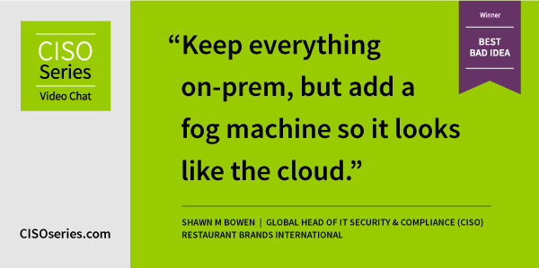 Congrats to Shawn Bowen, global head of IT security & compliance (CISO), Restaurant Brands International for winning this week’s Best Bad Idea.