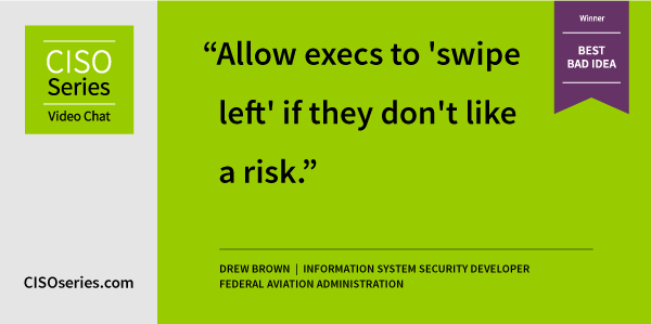 Congrats to Drew Brown, information system security developer, Federal Aviation Administration for winning this week’s Best Bad Idea.