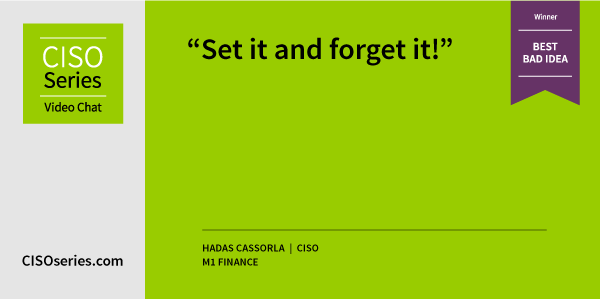 Congrats to Hadas Cassorla, CISO, M1 Finance for winning this week’s Best Bad Idea.
