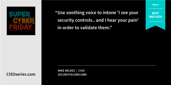 Congrats to Mike Wilkes, CISO, SecurityScorecard for winning this week’s Best Bad Idea.