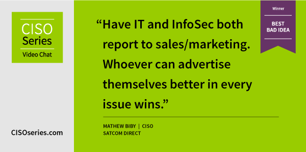 Congrats to Mathew Biby, CISO, Satcom Direct for winning this week’s Best Bad Idea