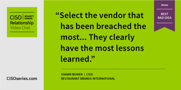 The CISO Series community knocked it out of the park last week with a whopping 59 bad ideas, but Shawn Bowen, CISO, RBI brought home the prize for a truly awful idea. We do have a few honorable mentions.