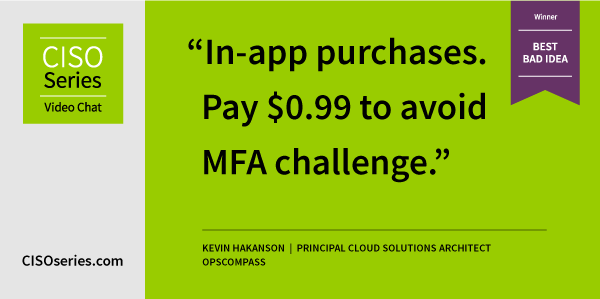 A respectable 45 bad ideas were delivered in last week’s CISO Series Video Chat with brand new winner Kevin Hakanson, principal cloud solutions architect for OpsCompass taking top prize. Here are a few of the honorable mentions.