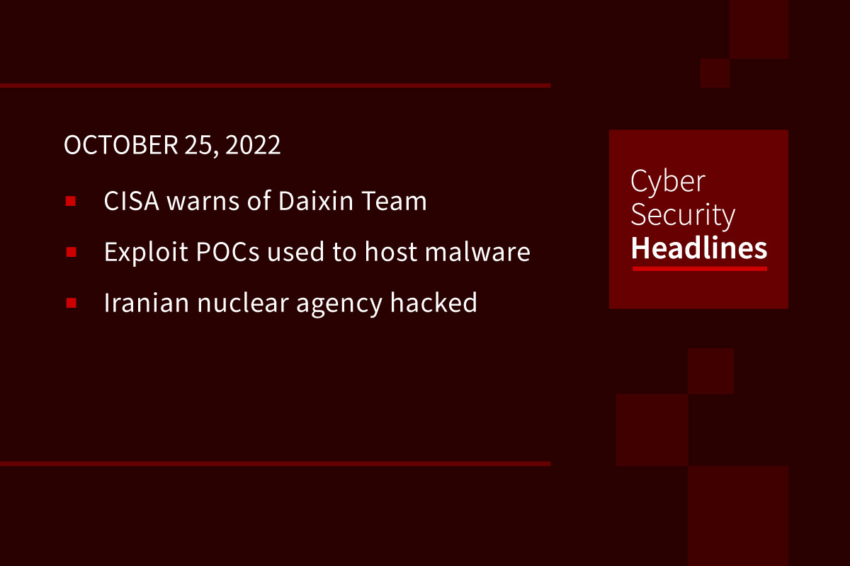 Cybersecurity News: Daixin Team, PoCs host malware, Iranian nuclear agency hacked