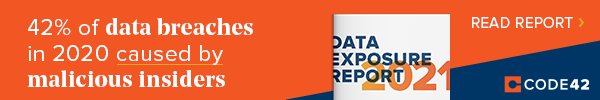 Code42’s annual Data Exposure Report on Insider Risk reveals that 42% of data breaches in the past year were caused by a malicious or criminal insider. Read the report for tips on how to stop your insider risk from becoming an insider threat.
