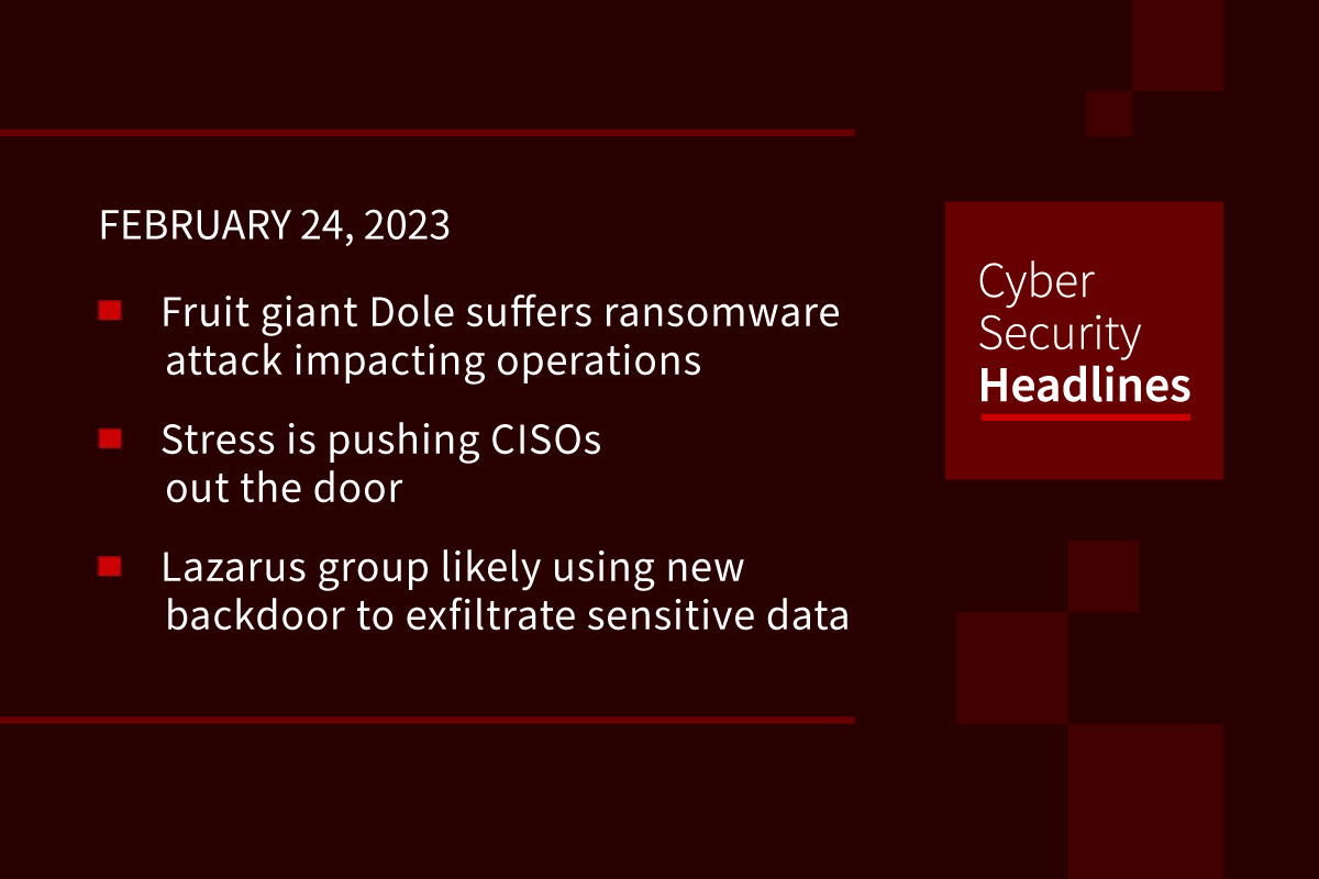 Cybersecurity News: Dole ransomware attack, stress devours CISOs, new Lazarus backdoor