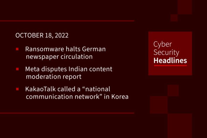 Cybersecurity News: Ransomware hits German newspaper, Meta battles on content moderation report, KakaoTalk goes down in Korea