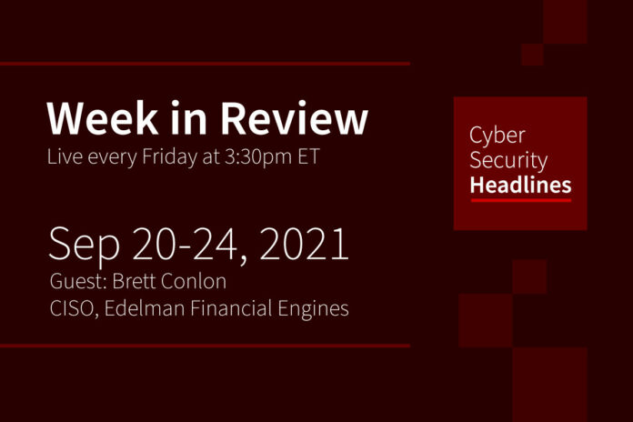 This week’s Cyber Security Headlines – Week in Review, Sep 20-24, 2021, is hosted by Rich Stroffolino with our guest, Brett Conlon, CISO, Edelman Financial Engines