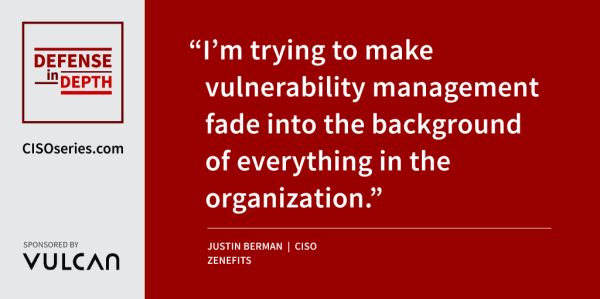Allan Alford and I produced an episode of Defense in Depth all on the subject of vulnerability management. Our guest was Justin Berman, CISO of Zenefits. This episode was released on the podcast feeds of both Defense in Depth and CISO/Security Vendor Relationship Podcast.